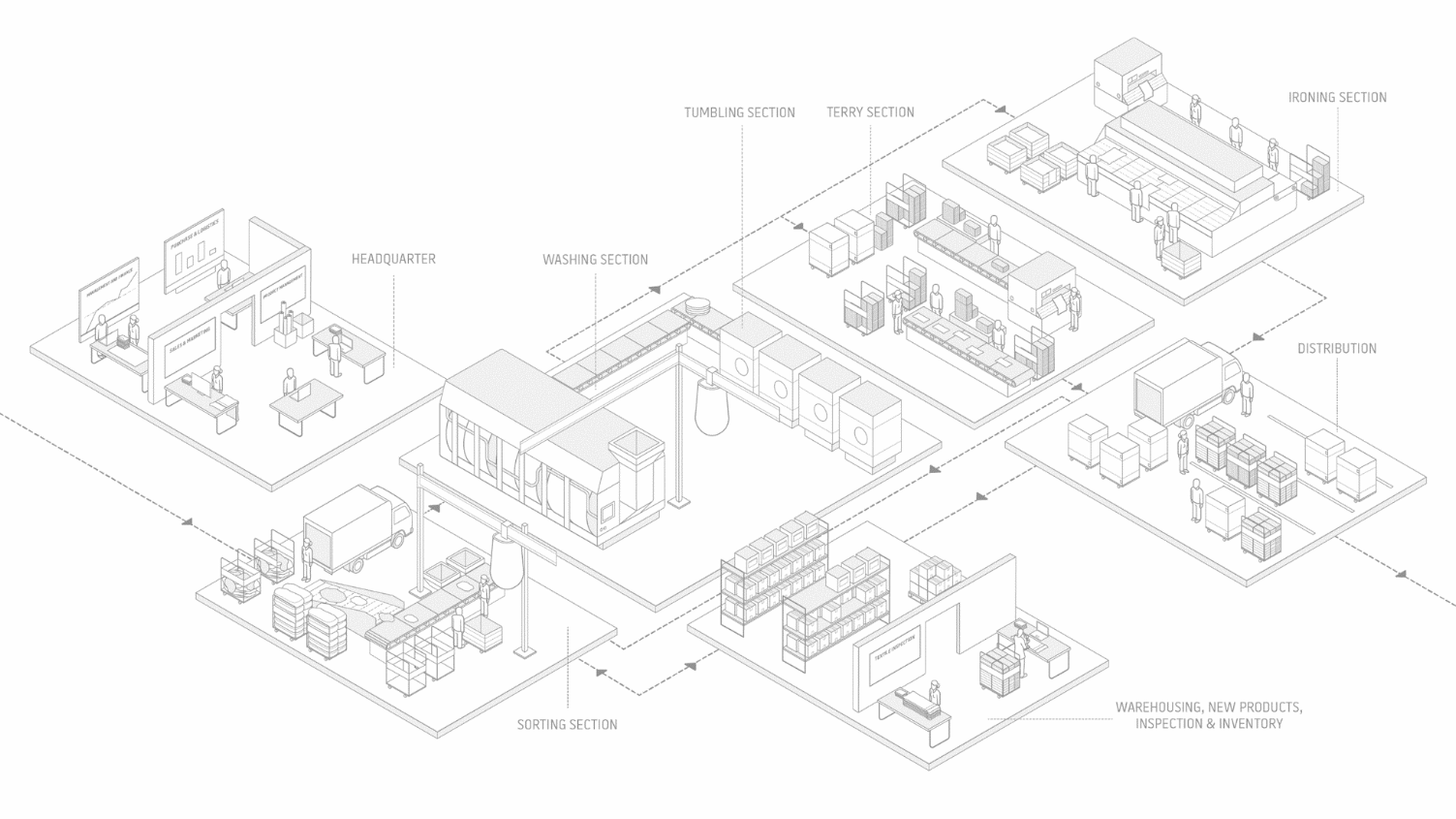 Our business model is perhaps the pioneer of the sharing economy. Several decades ago, we started buying textiles to rent them out to hotels and restaurants. That way, we were able to pioneer the first sharing-model, as many of our textiles are either shared among hotels and restaurants or simply rented for a certain time period. After expiry, another hotel or restaurant will enjoy those same textiles.